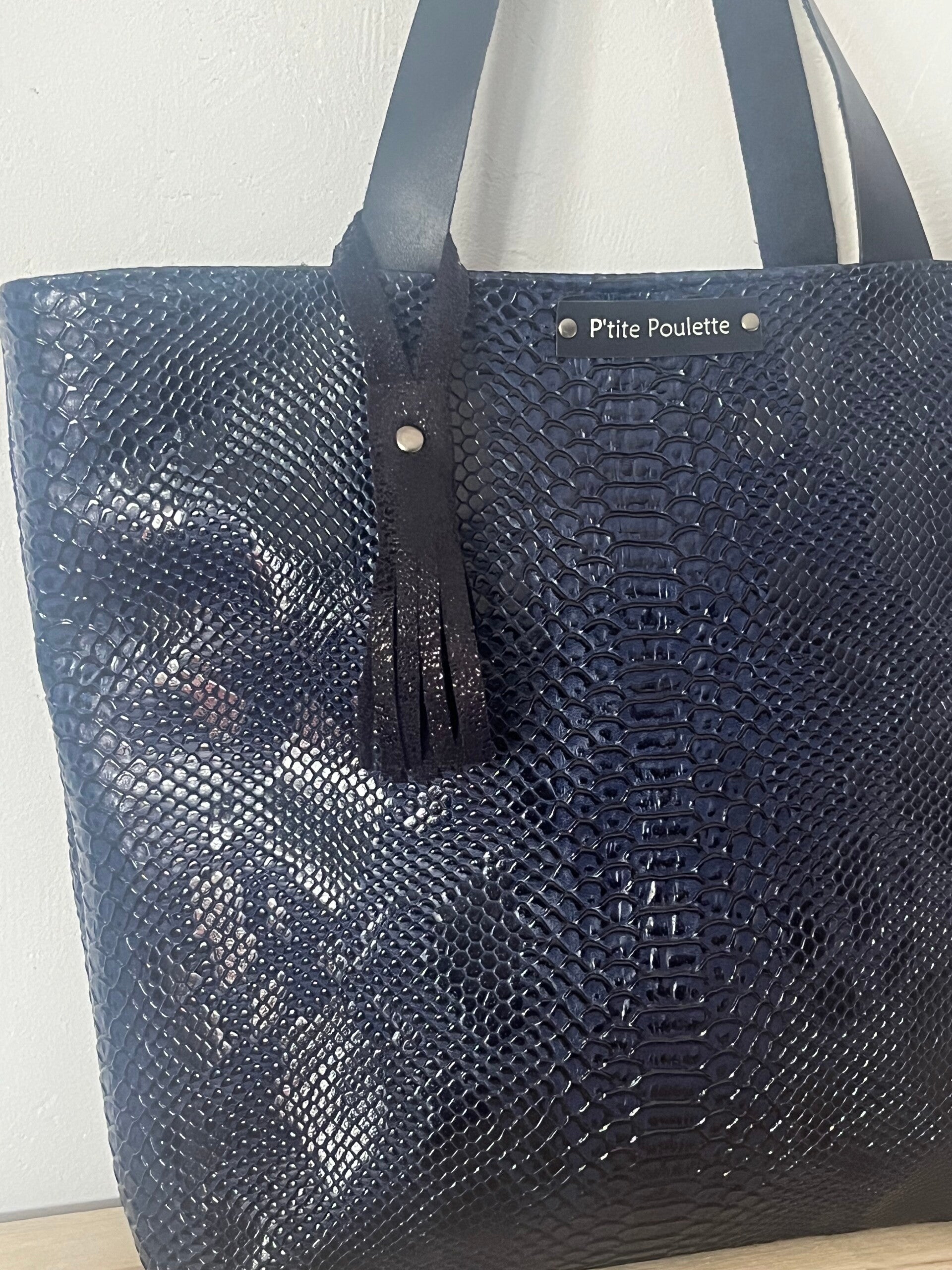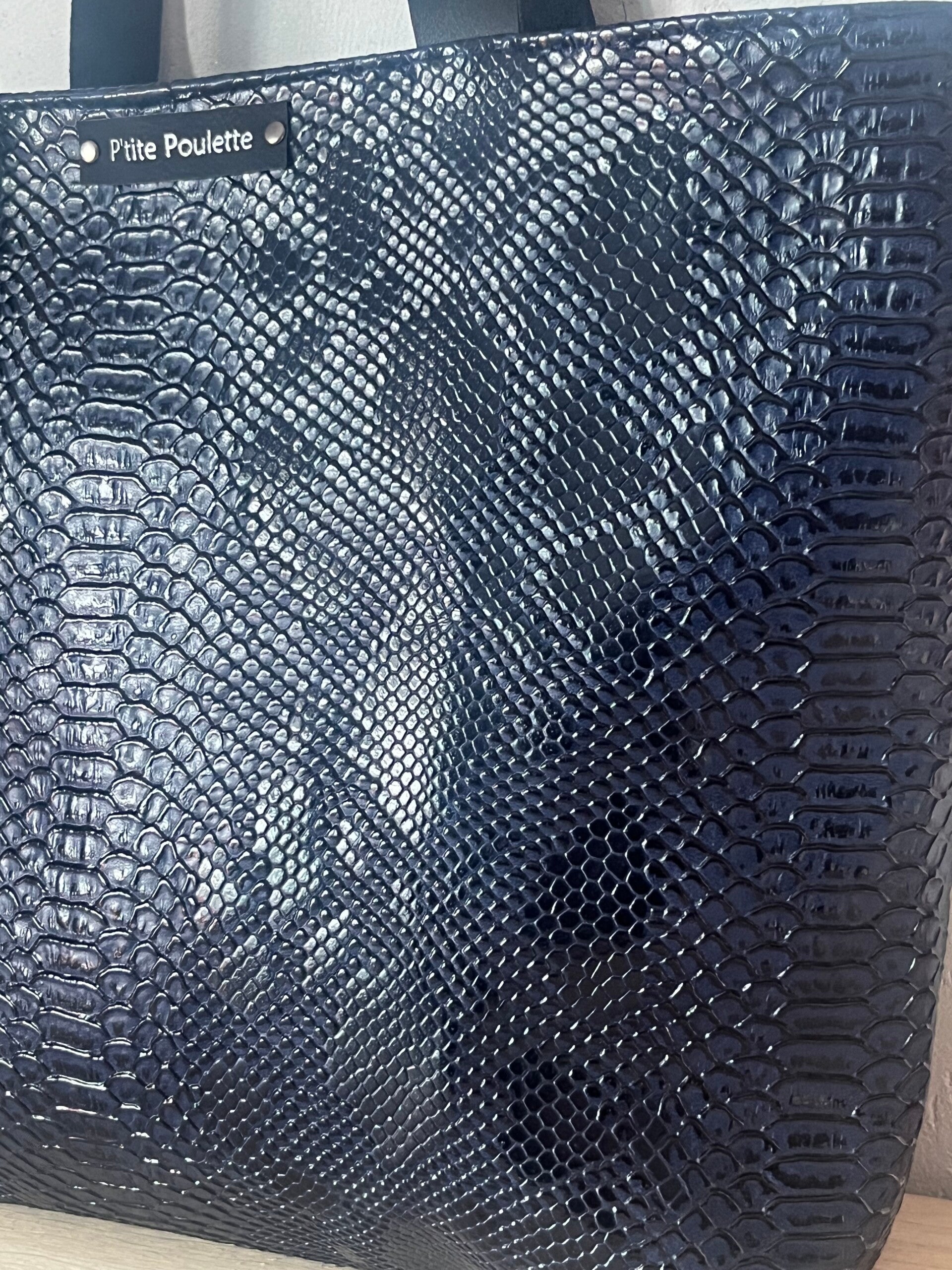Sac Cabas en simili cuir façon croco Navy: Création artisanale française