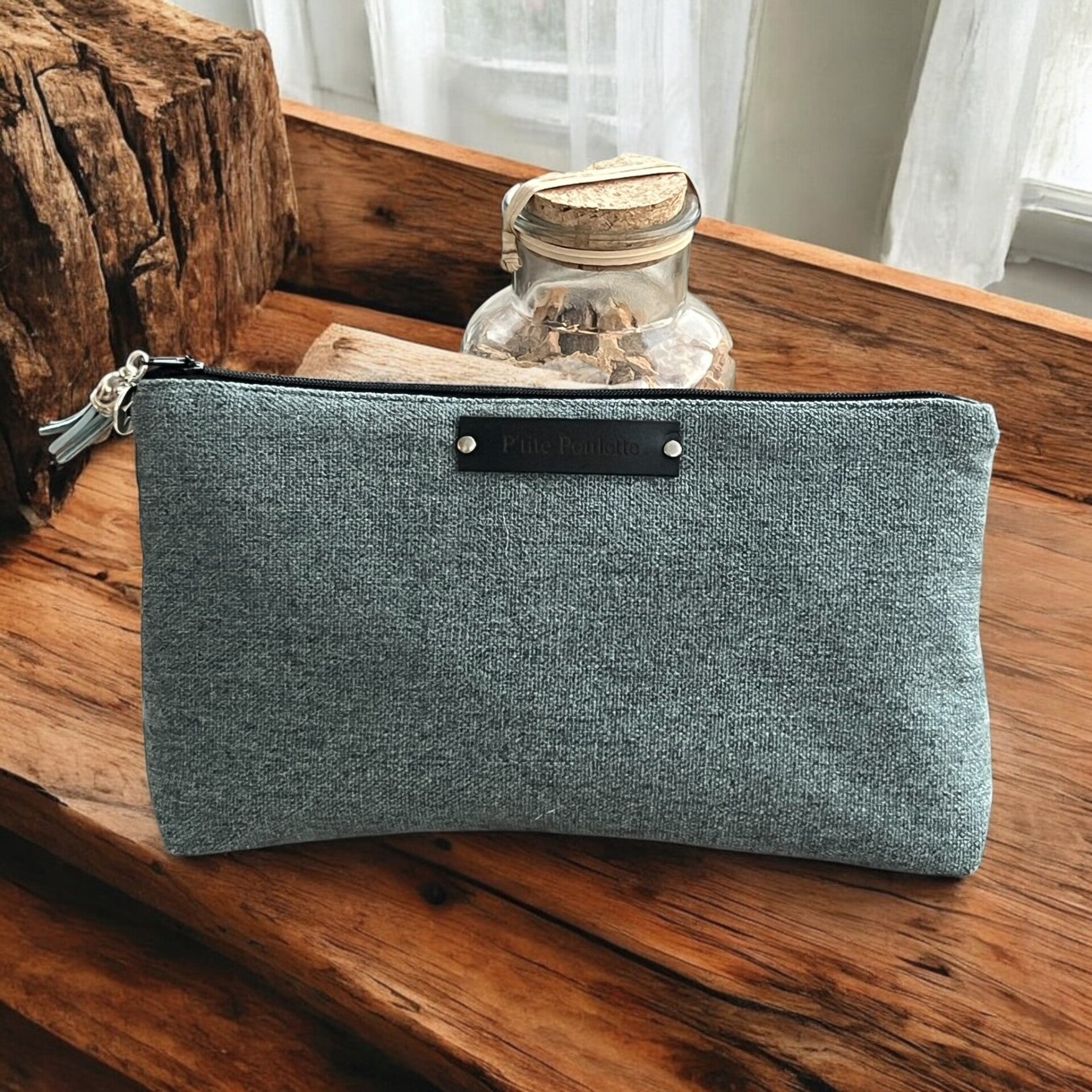 Trousse en coton bleu ciel P'tite Poulette-Création artisanale française