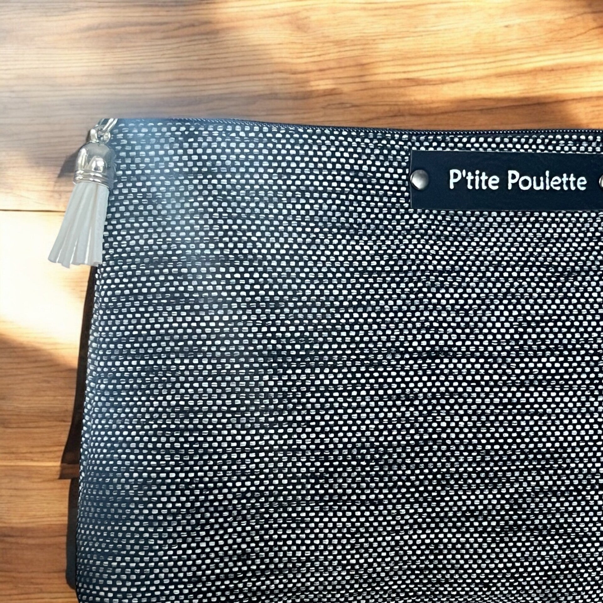 Trousse chiné noir & blanche- P'tite Poulette-Création artisanale française