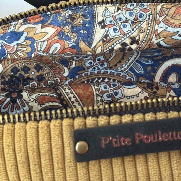 La banane P’tite Poulette séduit par son style à la fois chic et naturel. Réalisée en velours côtelé tabac pailleté, elle allie douceur, éclat et caractère. Sa teinte chaude et sa texture veloutée en font un accessoire idéal pour accompagner toutes les tenues, en toute saison.