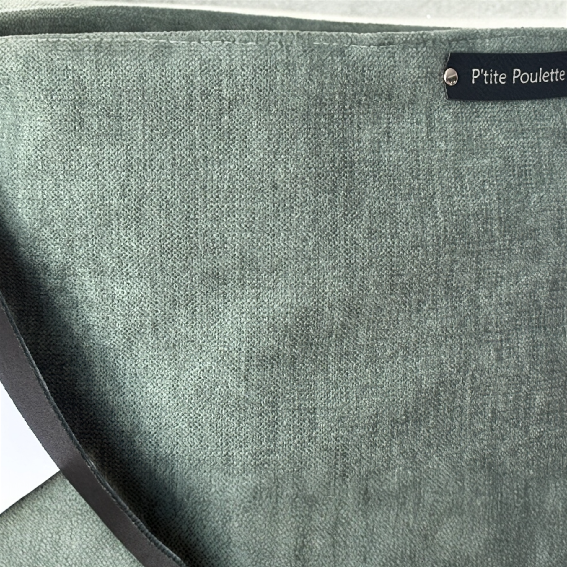 Le sac cabas “P'tite Poulette Collection” en velours vert d'eau allie élégance et praticité. Grande contenance, 4 poches intérieures, anse en cuir et fermeture étoilée : un indispensable signé P’tite Poulette.