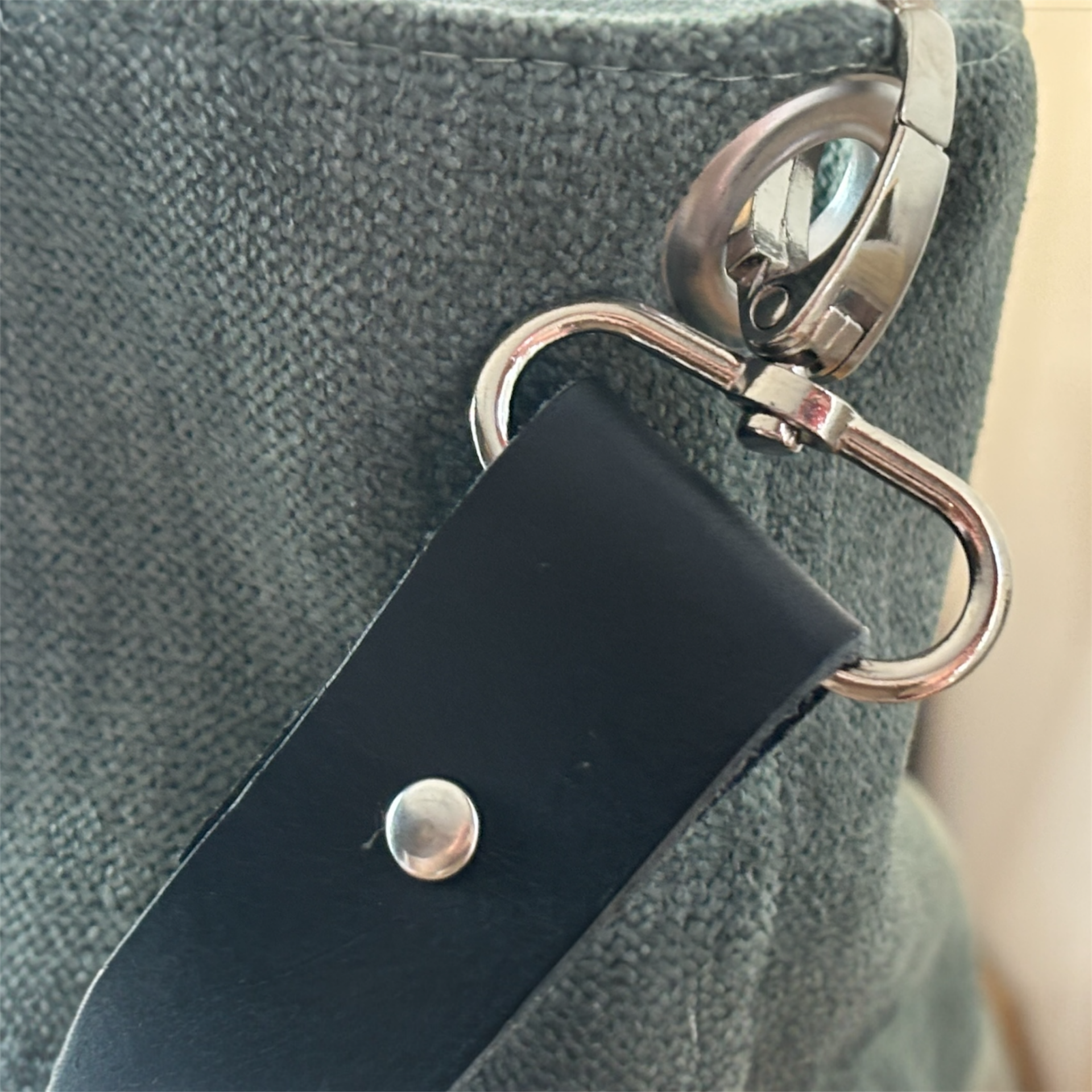 Sac Cabas “P'tite Poulette Collection” – Velours Vert d'eau et Anse en Cuir Véritable – Création Artisanale Française